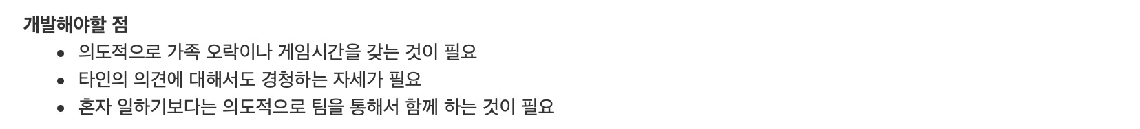 - 스스로 부족한 점을 파악하고 보완하고자 노력함.